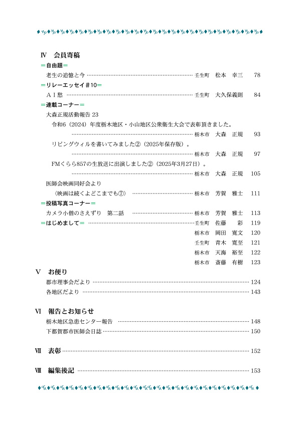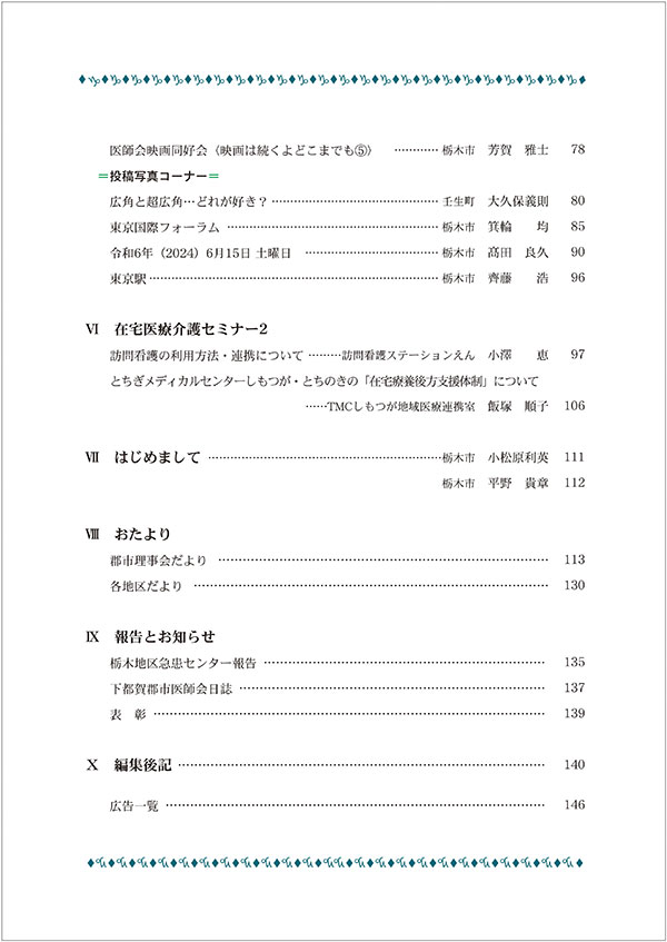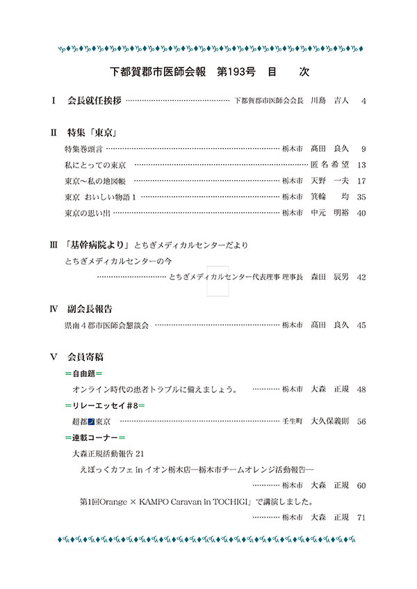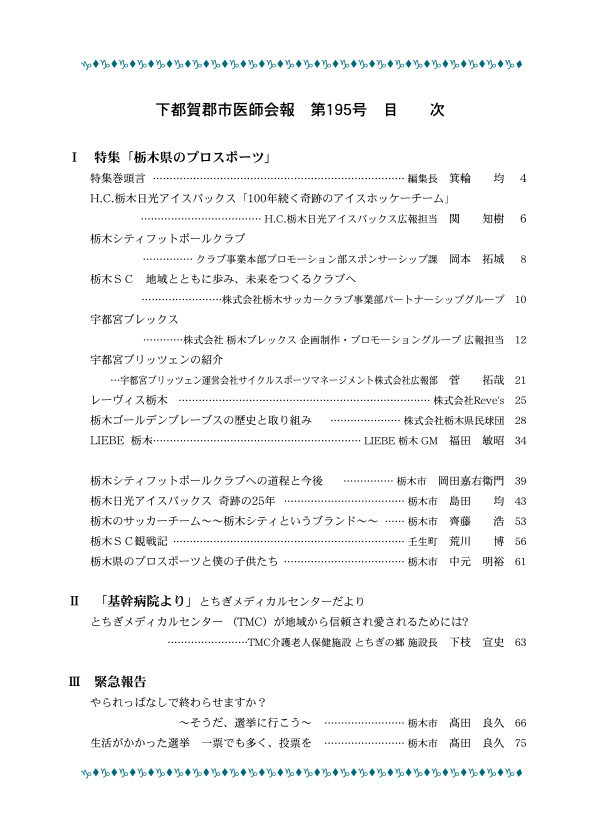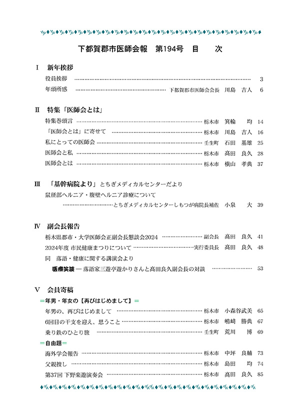 ここに下都賀郡市医師会会報のバックナンバーの表紙と目次を掲載します。