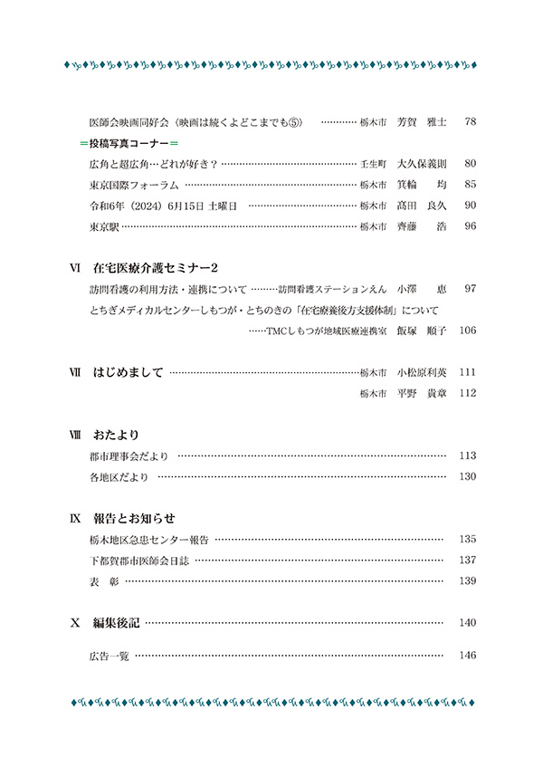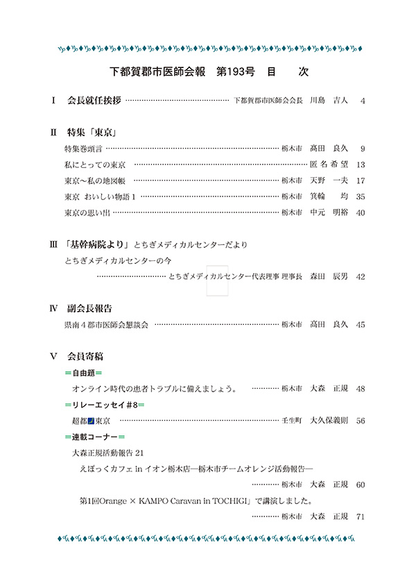 ここに下都賀郡市医師会会報のバックナンバーの表紙と目次を掲載します。